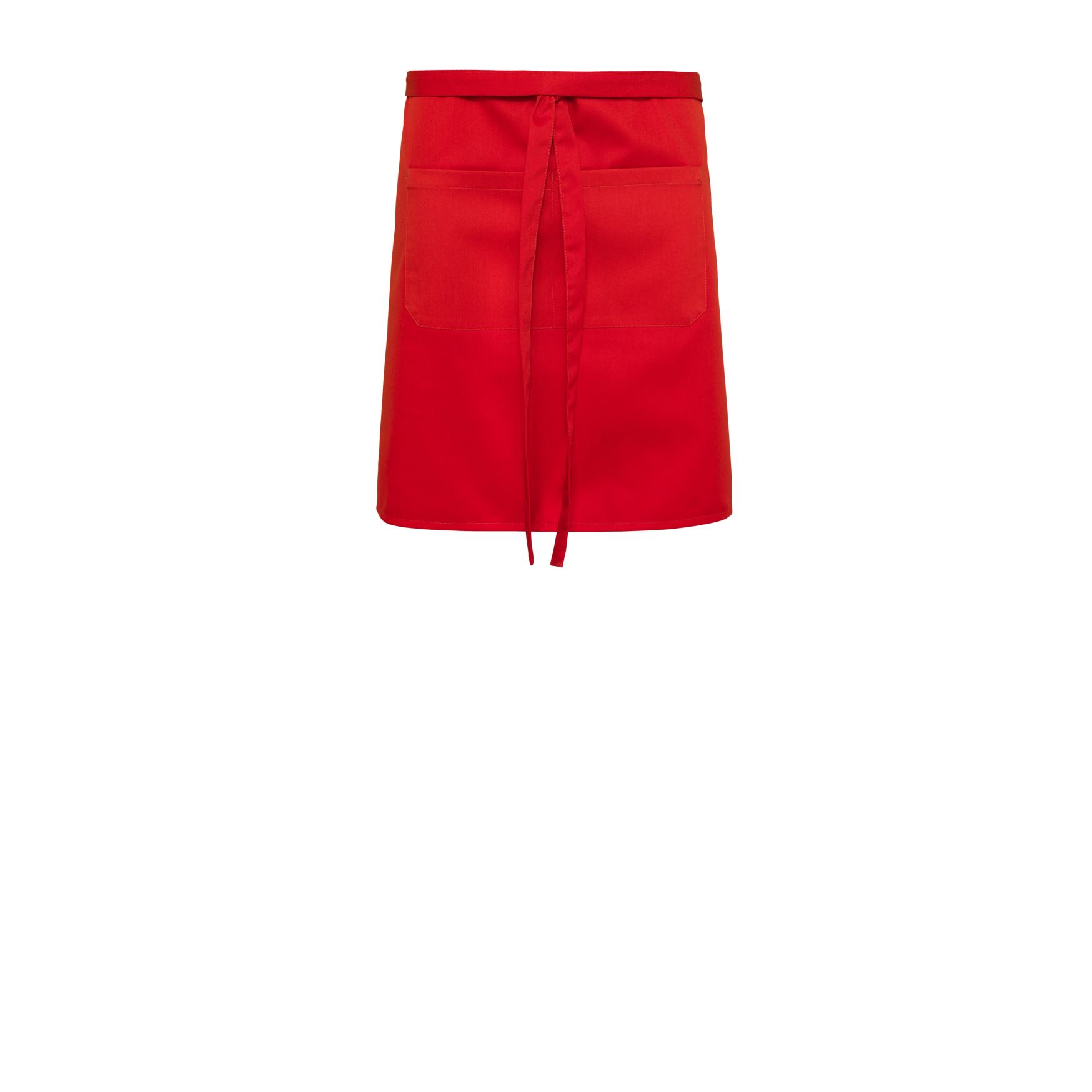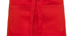 Bistroschürze mit vorne mittig aufgesetzter Tasche und Bändern.