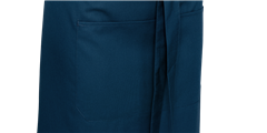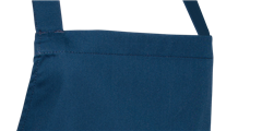 Latzschürze mit aufgesetzter Tasche rechts und Bändern.