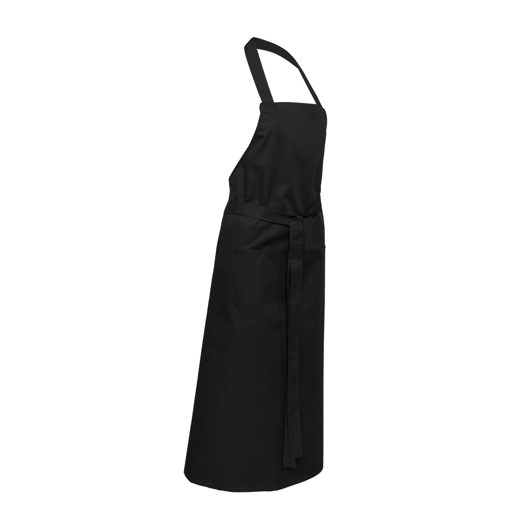 Latzschürze mit extra Breite, Tasche rechts und Bändern.